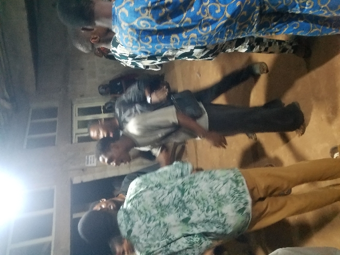 A forensic analysis of the image reveals a nighttime or dimly lit indoor gathering of approximately eight to ten individuals, predominantly males