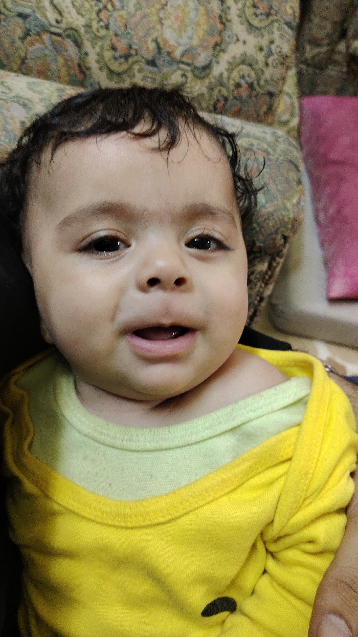 - "An indoor close-up image displays an infant, estimated to be between 6-12 months of age, with fair skin, dark curly hair, and dark eyes, looking directly towards the viewer" by FM-YWUCQ2, licensed under CC BY 4.0