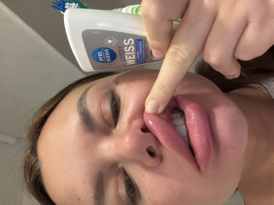 - "A woman holds a tube of Perl Weiss Expert Weiss toothpaste near her face" by FM-RZ2bK2, licensed under CC BY 4.0