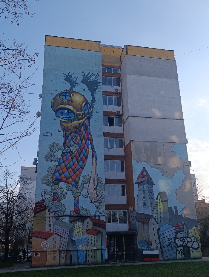 - "This image captures a multi-story residential building in Sofia, Bulgaria, featuring extensive murals on its facade under a clear blue sky" by FM-k8Oba2, licensed under CC BY 4.0