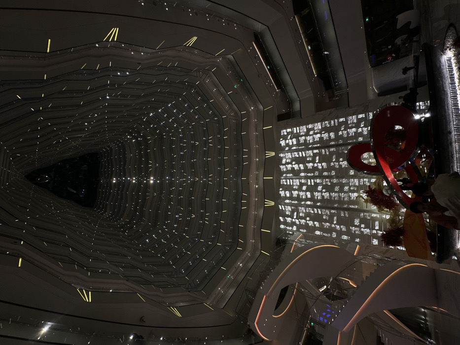 - "An interior wide-angle photograph depicts the multi-story atrium of the Grand Hyatt Guangzhou, located in Tianhe District, China, under dim artificial illumination" by FM-m7RDy2, licensed under CC BY 4.0