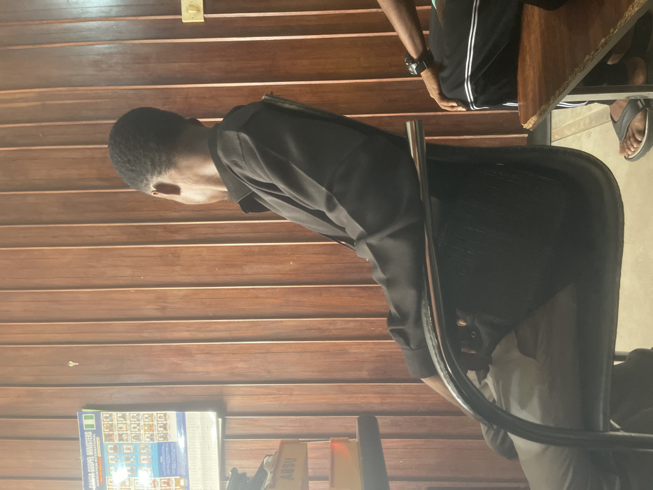 The image depicts an indoor scene, likely an office or waiting area, in Uturu, Nigeria