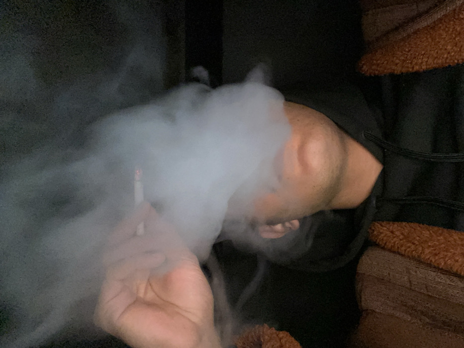 - "A person exhales a thick cloud of smoke, likely from a cigarette held in their left hand" by FM-KX5IH3, licensed under CC BY 4.0