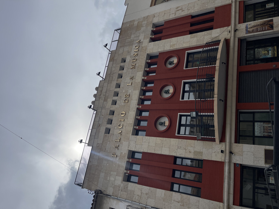 The image depicts the "Palacio de la Música" (Palace of Music) building, located in Buñol, Spain