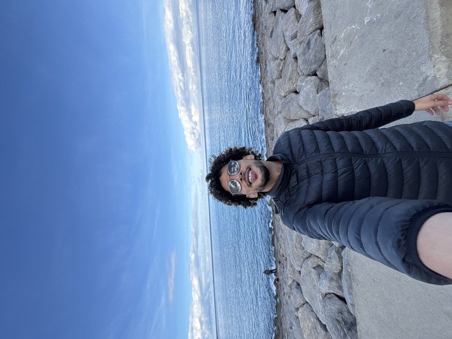 - "A male subject is captured in a selfie-style photograph taken at a coastal location in Tangier, Morocco, likely a rocky breakwater or promenade" by FM-YEyMx1, licensed under CC BY 4.0
