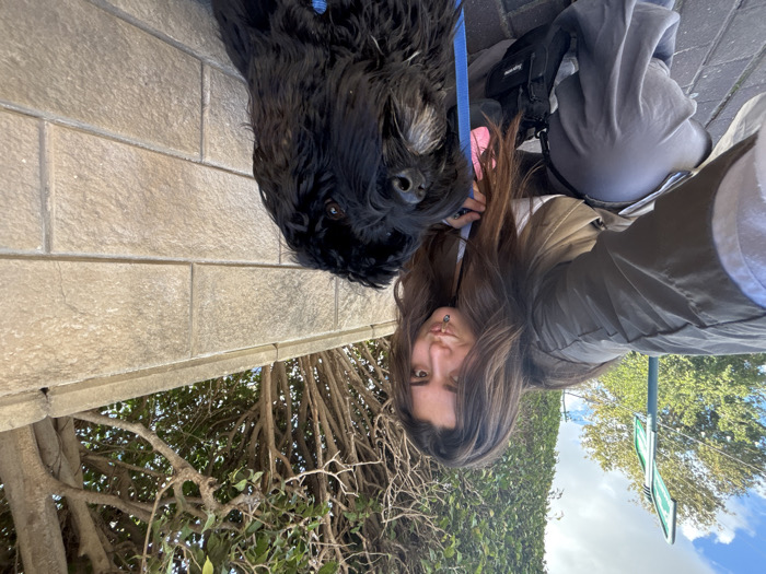 - "An outdoor daylight image taken in Ramat HaSharon, Israel, depicts a young adult female and a large black shaggy-haired dog" by FM-mfRp53, licensed under CC BY 4.0