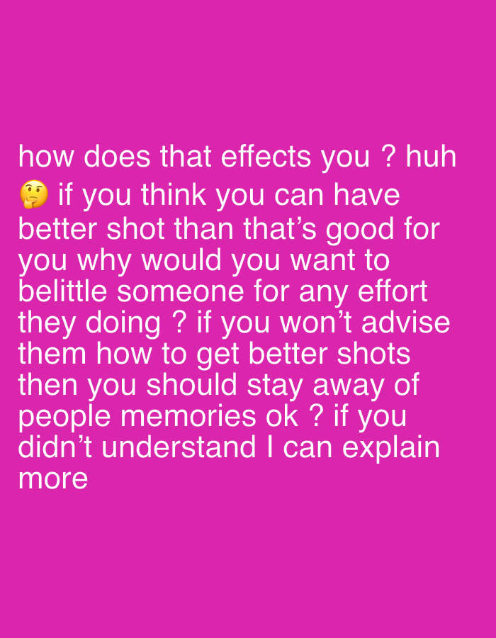 Here is a description of the image: The image is a pink rectangle with white text in the center. The text is a paragraph of questions and statements about belittling someone's efforts and the importance of advising people on how to improve. There is a thinking face emoji.