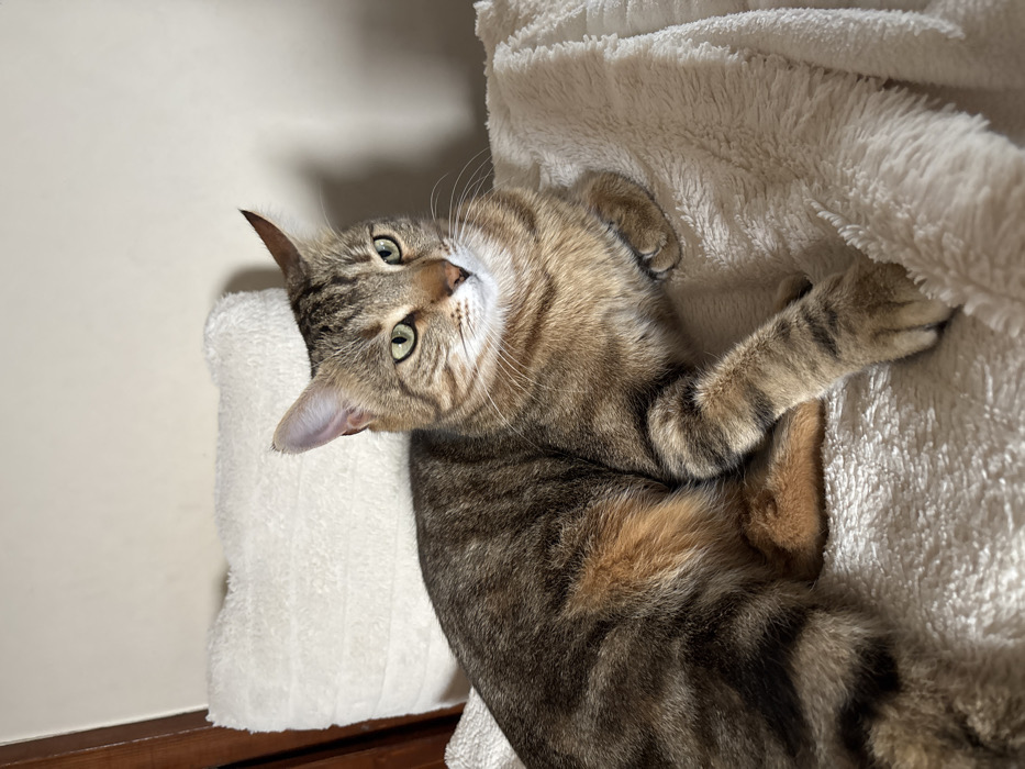 - "The image displays an indoor scene featuring a single domestic tabby cat" by FM-SRtTn2, licensed under CC BY 4.0
