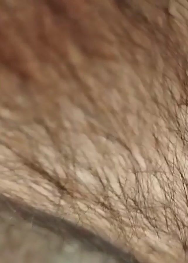 A close-up shot shows an arm covered in hair. The hair is dark brown to black and of varying lengths. The skin underneath is pale. The background is blurred and indistinct. A voice can be heard speaking.