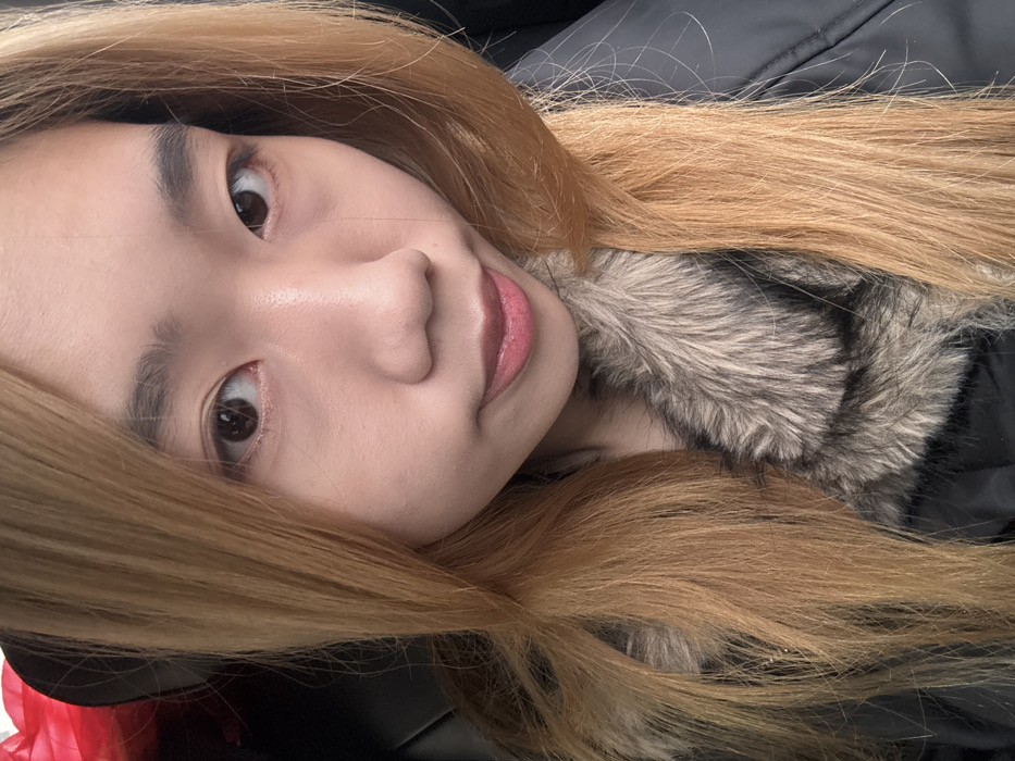 A young woman with light skin and brown eyes gazes at the camera. Her honey-blonde hair falls loosely around her face and a fur-lined jacket collar. Her eyebrows are thick and straight. Her lips are lightly tinted with a rosy color. The overall impression is soft and natural.