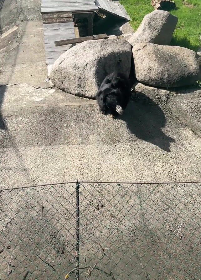 - "A black Sloth bear lies on a gray concrete surface, partially shaded by a large rock" by FM-aBUI22, licensed under CC BY 4.0