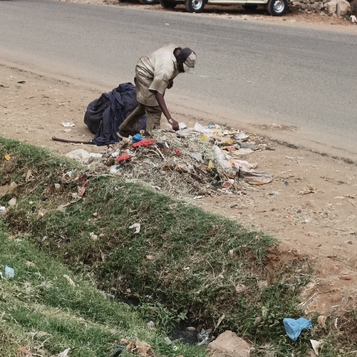 - "The image depicts an individual engaged in refuse collection on a dirt roadside shoulder in Nairobi, Kenya" by FM-SVsgu1, licensed under CC BY 4.0