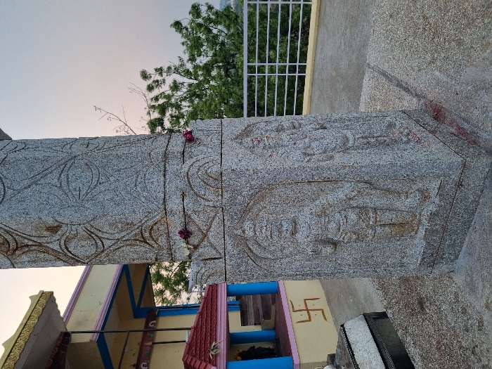 The image depicts an outdoor temple area in Koyalaguttapalli, India