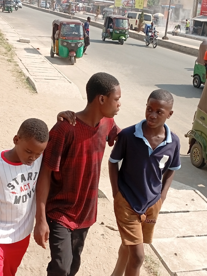 - "Three boys stand on a sidewalk, with a busy street in the background" by FM-kOvDM2, licensed under CC BY 4.0