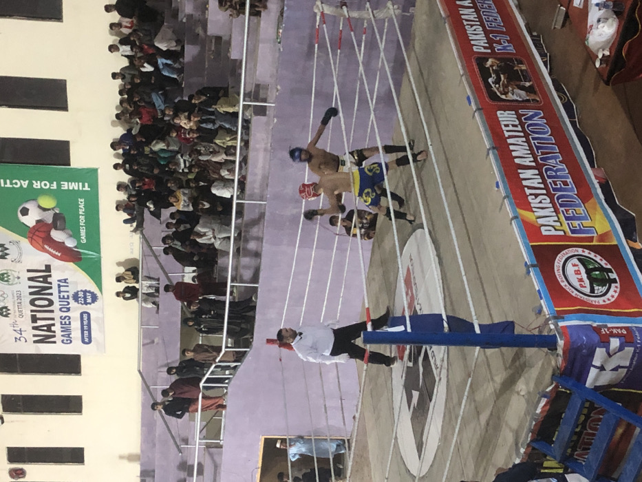 - "The image displays an indoor combat sports event occurring at the 34th National Games in Quetta, Pakistan" by FM-dKc3E2, licensed under CC BY 4.0