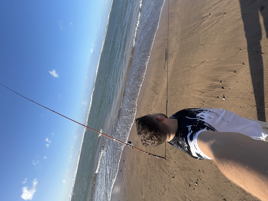An image captures a male subject standing on a sandy beach in Casablanca, Morocco, facing towards the Atlantic Ocean