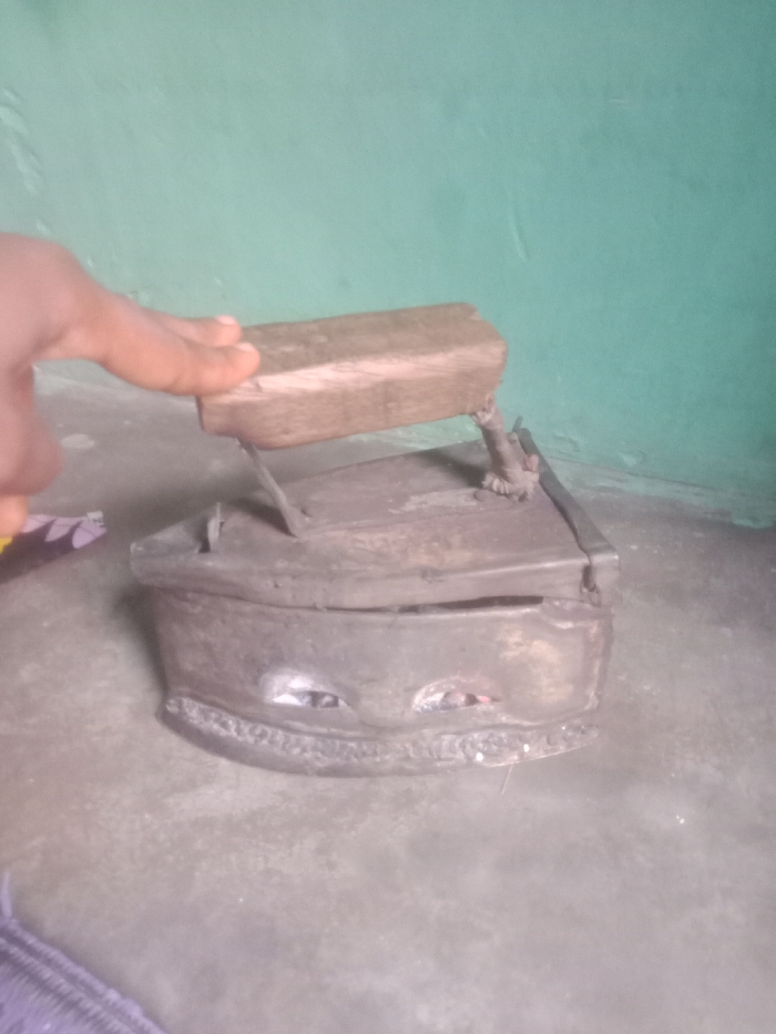 - "The image captures an indoor scene in the city of Unknown, Unknown, featuring a dark metal charcoal iron resting on a light grey concrete floor against a plain teal-colored wall" by FM-Fm7VJ2, licensed under CC BY 4.0