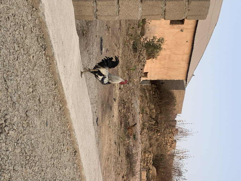 - "A rooster struts along a concrete ledge beside a gravelly ground" by FM-CAoxU2, licensed under CC BY 4.0