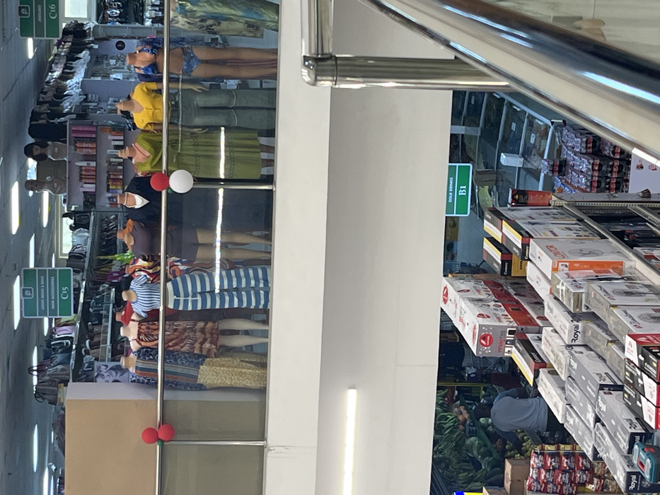 This image depicts the interior of a multi-level retail establishment located in Moba, Nigeria