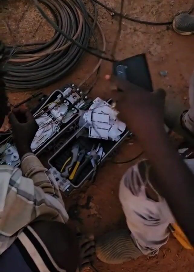 - "Two individuals are working on a fiber optic splicing job on a patch of red earth" by FM-wD7Od2, licensed under CC BY 4.0