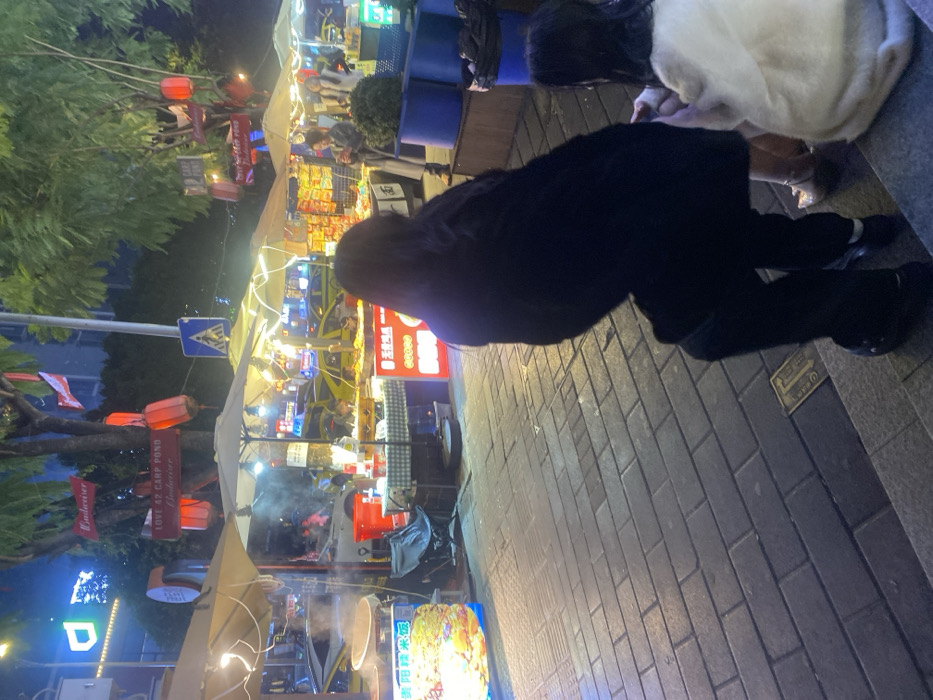 - "At a nighttime outdoor market, a person in black bends over, likely examining something on the brick pavement" by FM-I7Sd83, licensed under CC BY 4.0
