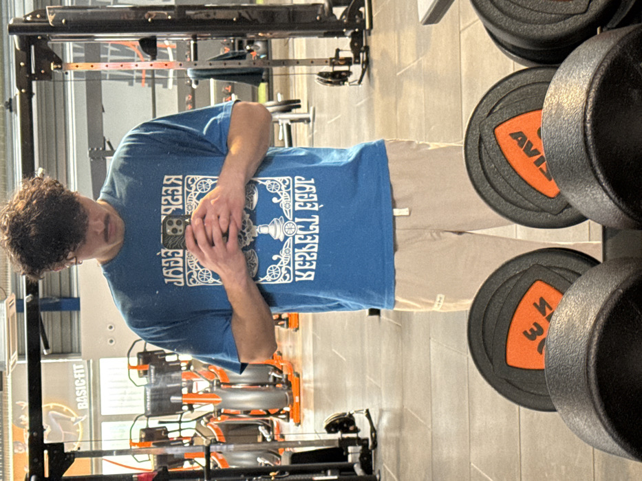 A male individual is depicted in a mirror selfie within a Basic-Fit gym located in Chantepie, France