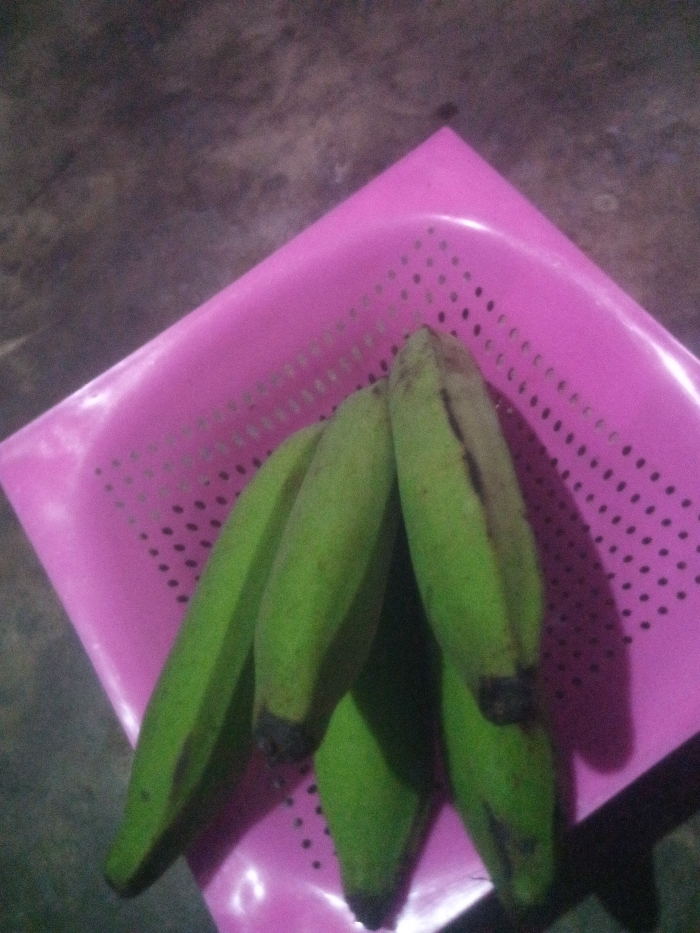 - "A pink, square colander holds five green plantains" by FM-vOlSb2, licensed under CC BY 4.0