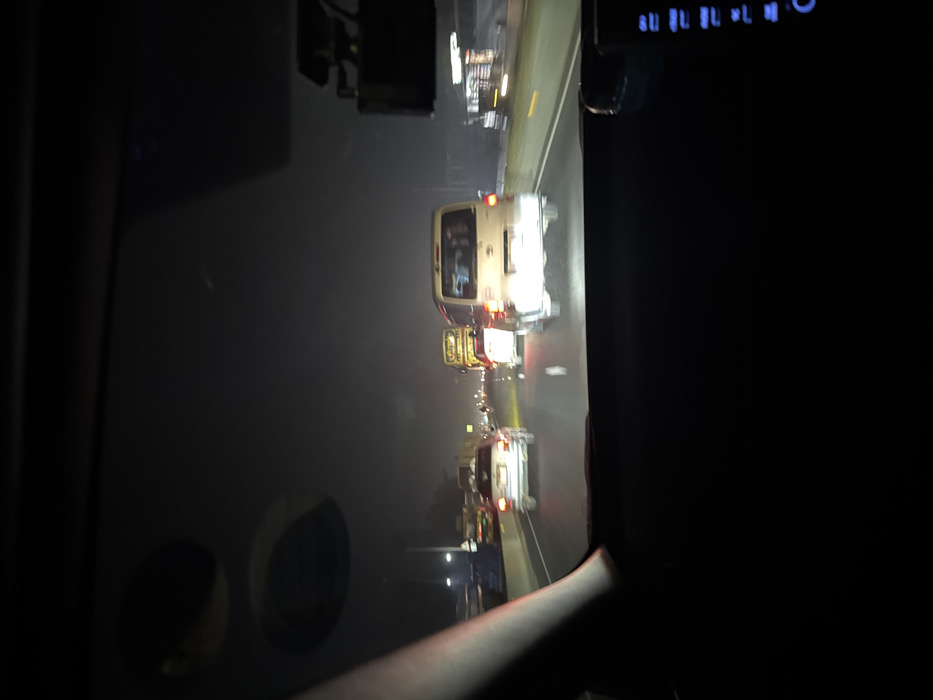 - "The image presents a nighttime scene observed from the interior of a vehicle, looking forward through the windshield on a multi-lane road in Bogura, Bangladesh" by FM-Infr12, licensed under CC BY 4.0