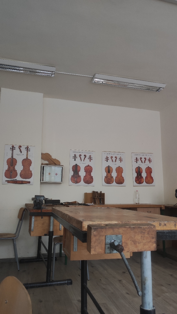 - "The image depicts an unoccupied indoor workshop or classroom, likely for string instrument making or repair, situated in Kazanlak, Bulgaria" by FM-HHgqC2, licensed under CC BY 4.0