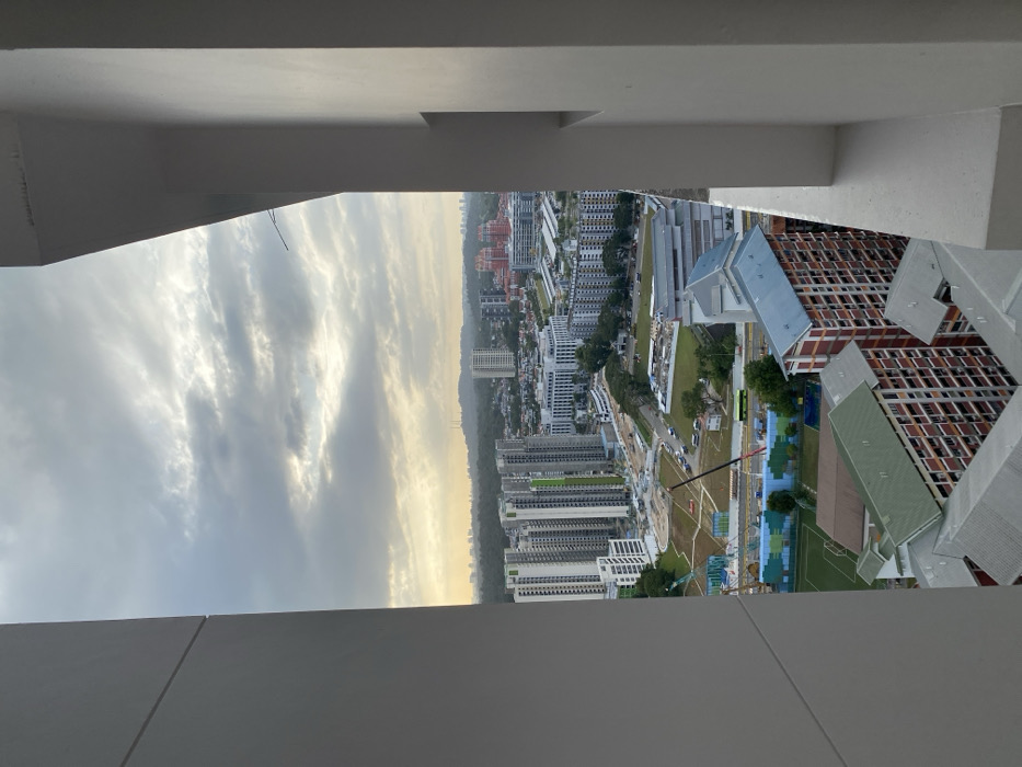 - "The image displays a high-angle panoramic view of a dense urban landscape in Singapore, framed vertically by two light-colored architectural walls" by FM-VIFEX2, licensed under CC BY 4.0