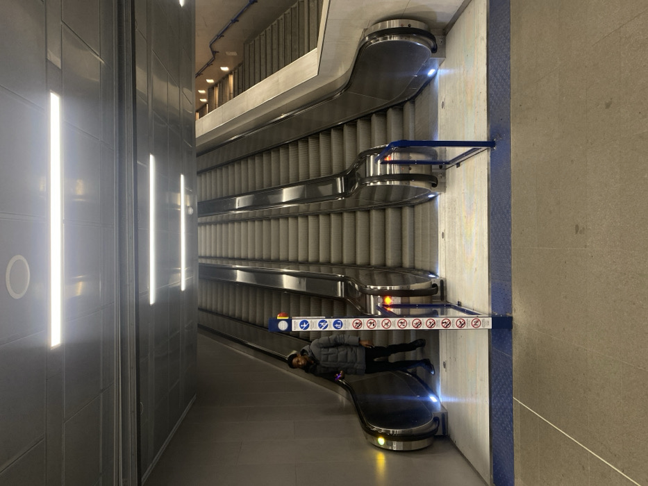 - "A gray and white indoor scene shows a set of escalators from a slightly angled, high perspective" by FM-KiN8j2, licensed under CC BY 4.0