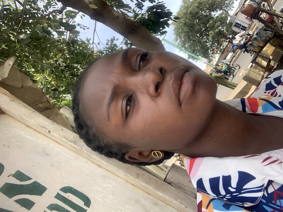- "The image depicts a close-up, slightly upward-angled photograph of a dark-skinned individual, likely female, located in an urban setting in Gombe, Nigeria" by FM-rhFJW2, licensed under CC BY 4.0