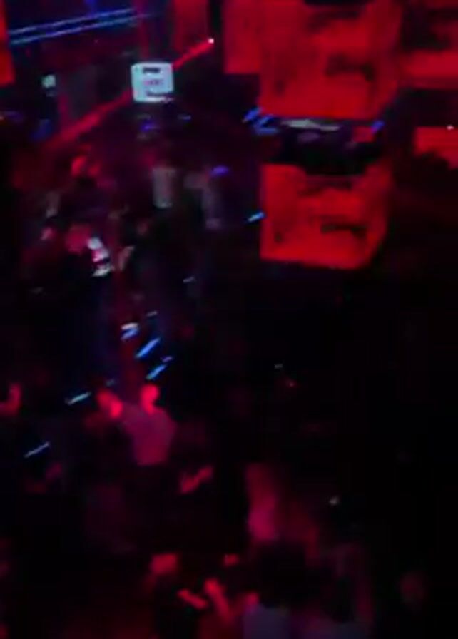 The video depicts a crowded nightclub with many people dancing