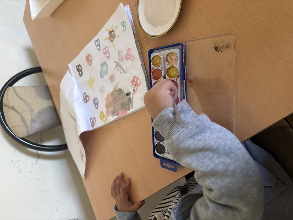 - "An overhead shot captured in Sisian, Armenia, depicts a child's hands and forearms engaged in painting on a light brown wooden table" by FM-4QNTW2, licensed under CC BY 4.0