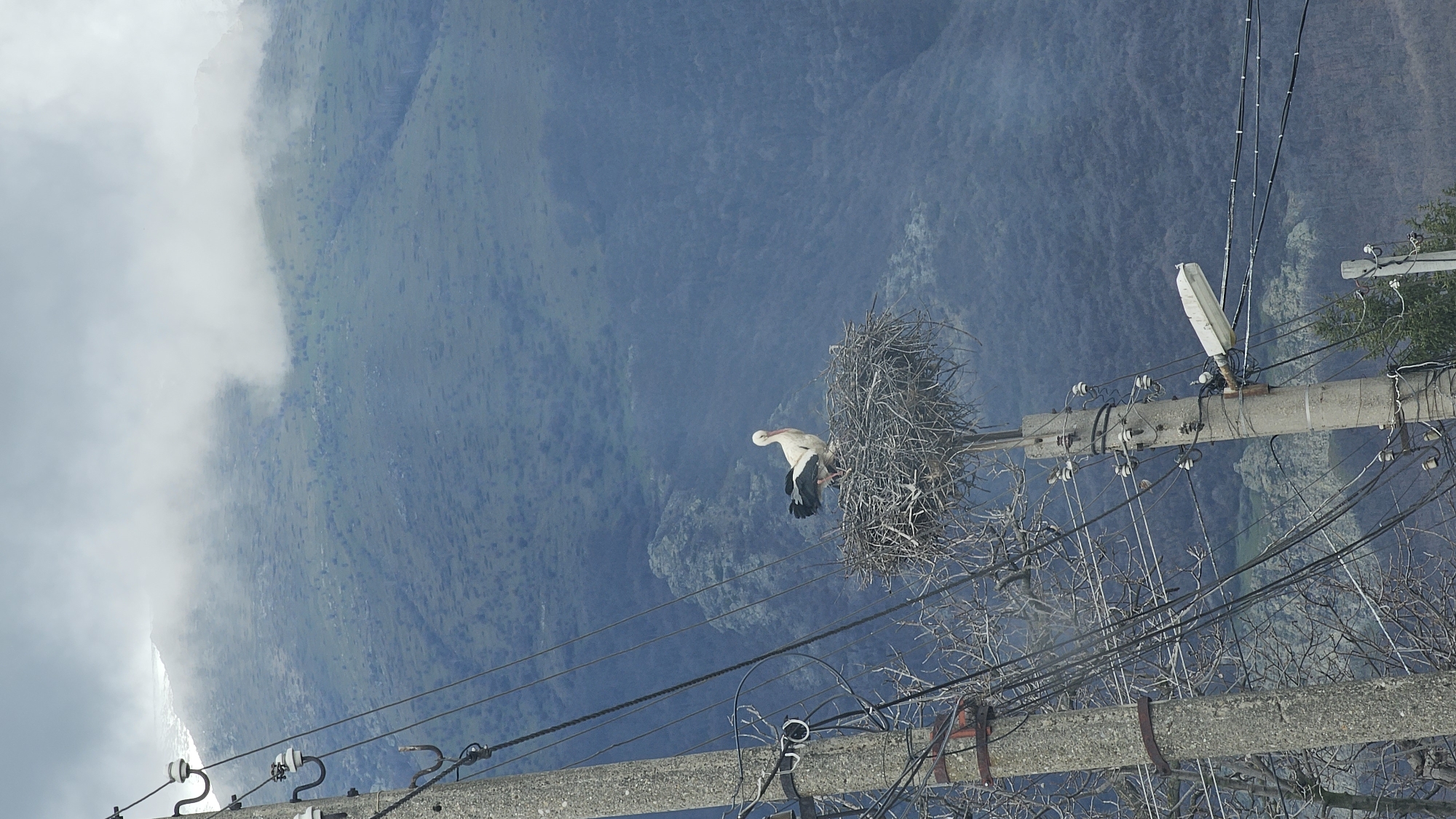 - "A rotated outdoor shot shows a white stork standing in a large nest atop a utility pole" by FM-EPOZp2, licensed under CC BY 4.0