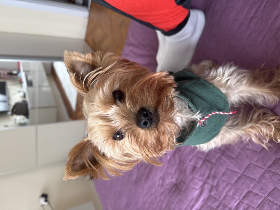 - "A Yorkshire Terrier, characterized by its golden-brown and tan fur and erect ears, is positioned centrally, looking directly at the viewer" by FM-gglak2, licensed under CC BY 4.0