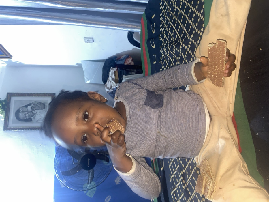 An image taken in Adankolo, Nigeria, depicts a young child seated indoors, consuming food