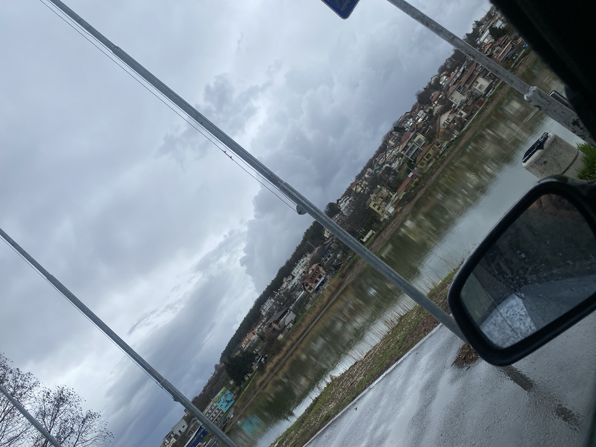- "The image displays an outdoor scene captured from a low, tilted perspective, likely from within a vehicle, overlooking a body of water in Nikolovo, Bulgaria, on an overcast day" by FM-xoHO02, licensed under CC BY 4.0