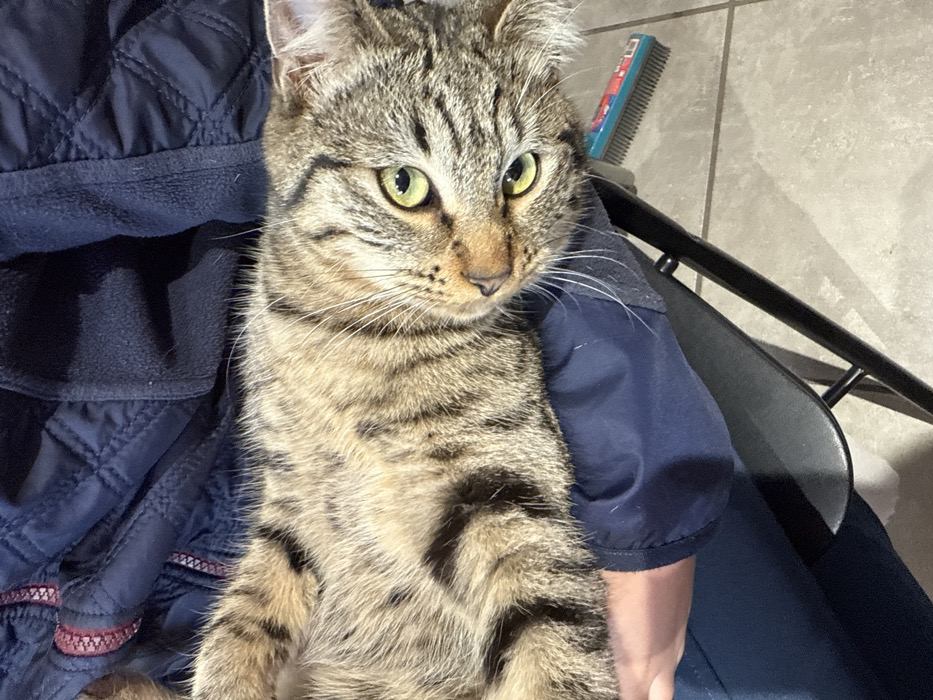 - "The image depicts a domestic tabby cat lying supine on the lap of an individual, indoors in Montrond-les-Bains, France" by FM-ln0ux2, licensed under CC BY 4.0