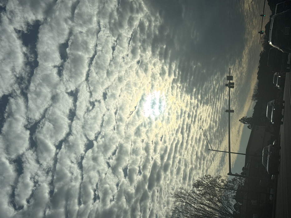 - "The image showcases an expansive sky filled with rows of rippling altocumulus clouds, their fluffy forms partially obscuring the sun" by FM-AodXs2, licensed under CC BY 4.0