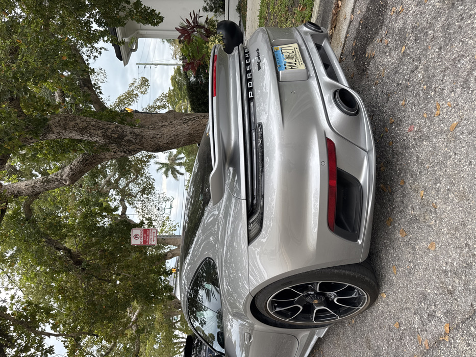 A silver Porsche 911 Turbo S (Florida license plate ADQL271) is parked on an asphalt surface in Naples, Florida, United States of America