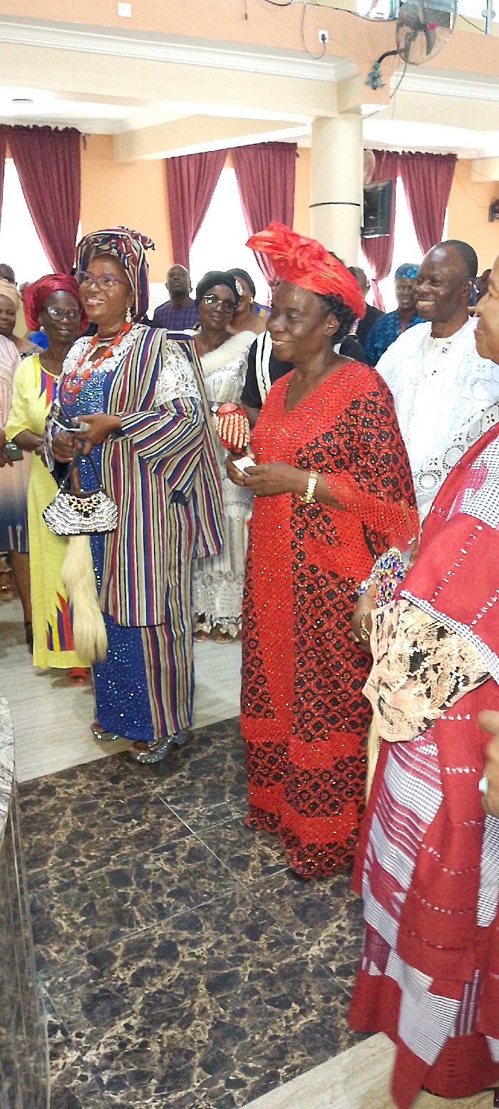 The image depicts an indoor gathering in Kubwa, Nigeria, featuring approximately 10-15 adults in traditional Nigerian attire