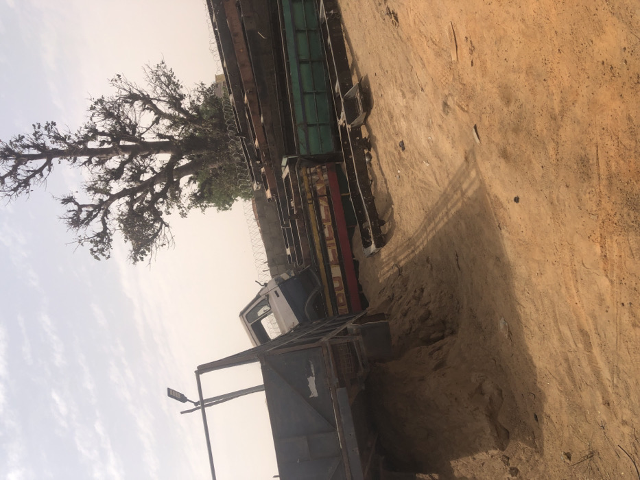 The scene depicts an outdoor storage or repair yard in Tukur Tukur, Nigeria, under bright daylight conditions