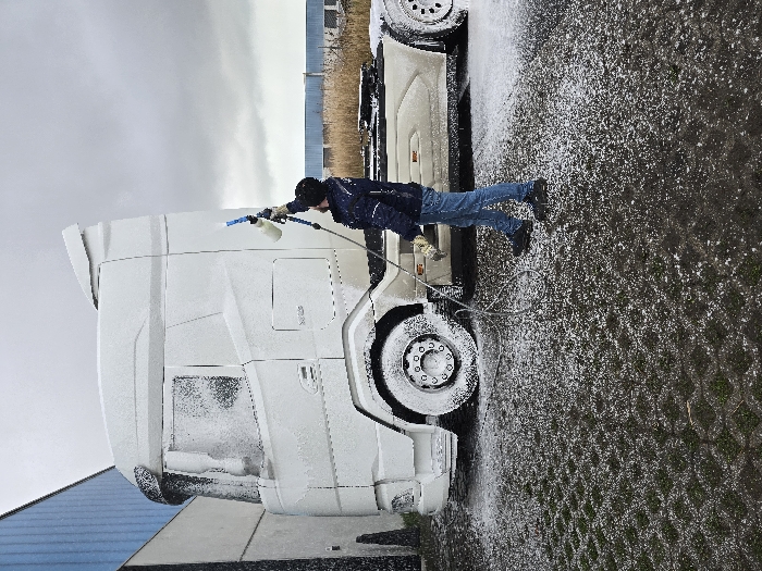 - "A single individual is observed applying a thick white foam to a large white semi-truck in an outdoor location in Ostend, Belgium" by FM-dTRWD3, licensed under CC BY 4.0