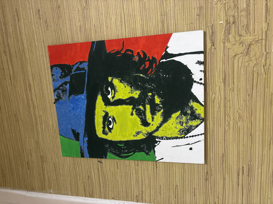 - "The scene captures an indoor wall in Krasny Klyuch, Russia, displaying a rectangular pop art portrait of a man" by FM-oAmG62, licensed under CC BY 4.0