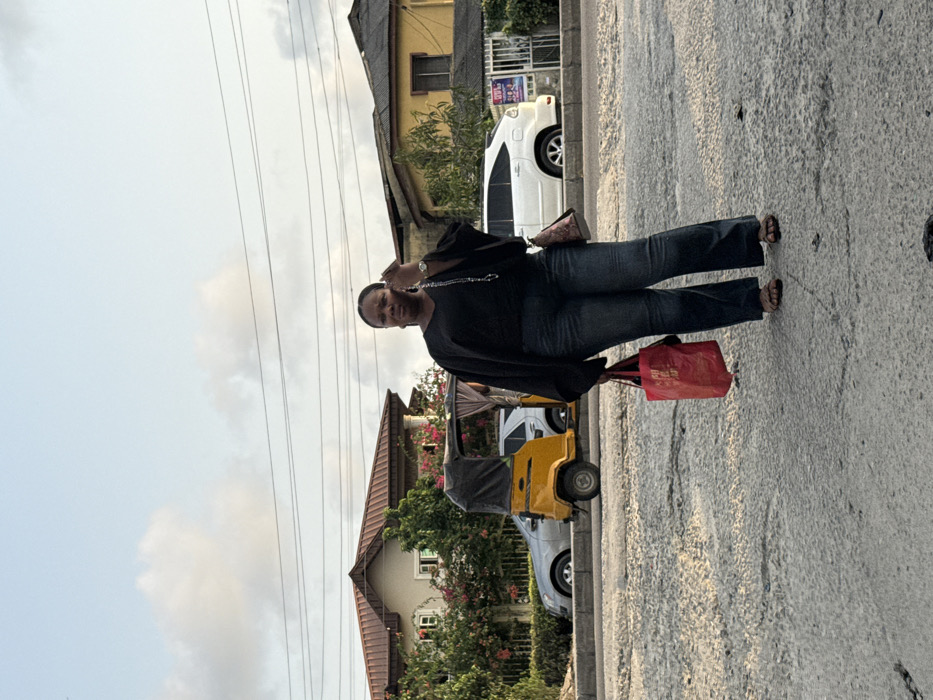 A woman in jeans and a black top stands on a street