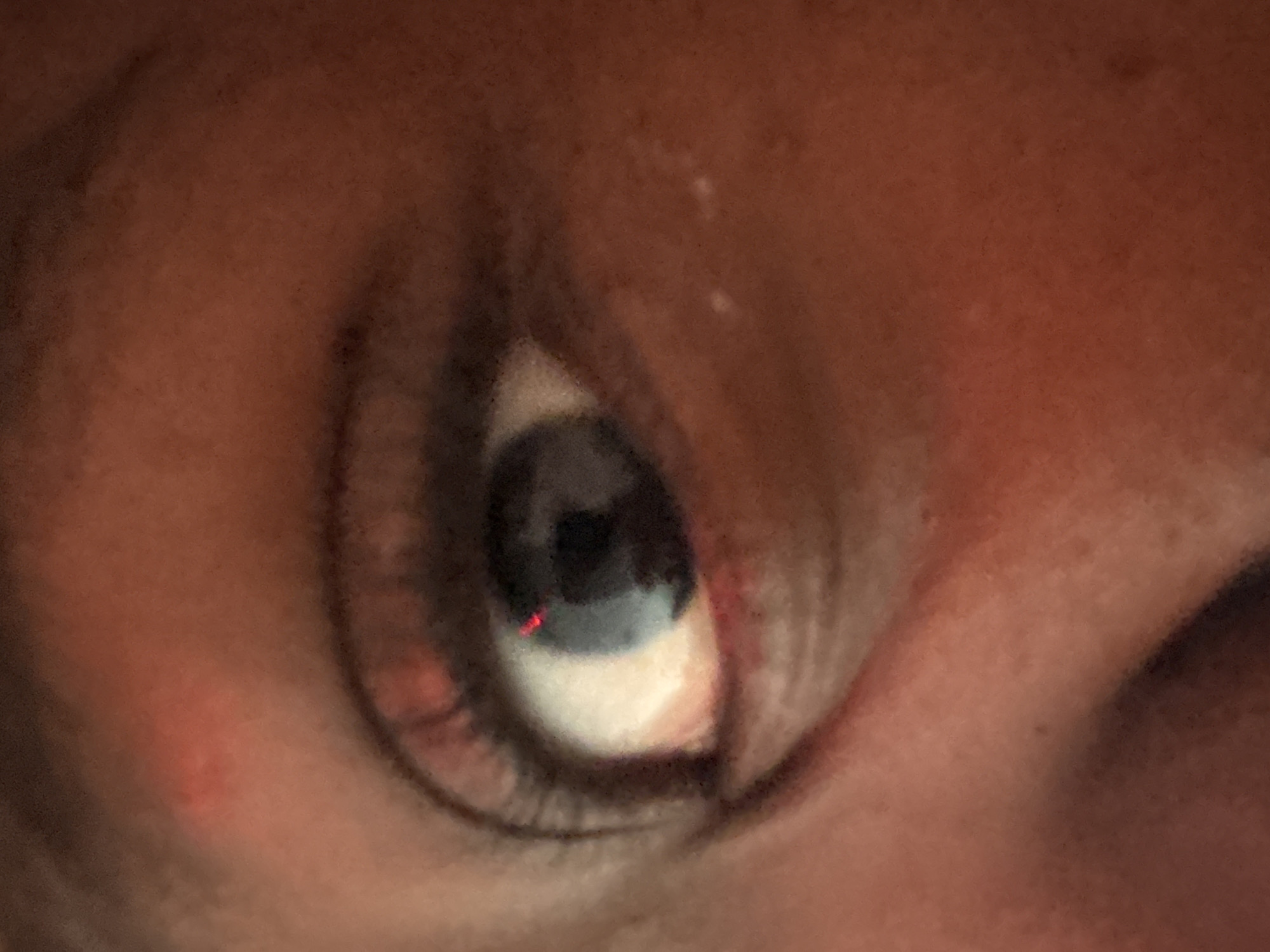 - "A close-up shot shows a human eye, predominantly blue, with a red reflection visible on the iris" by FM-EyE272, licensed under CC BY 4.0