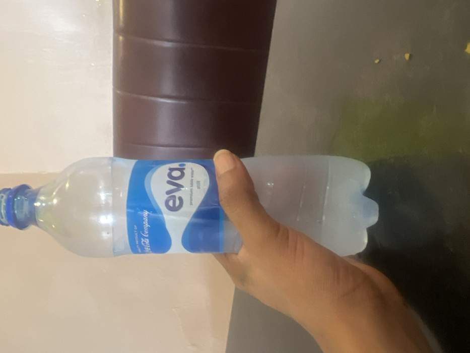 - "A medium-brown skinned right hand grips a clear plastic bottle of "eva" by FM-pcboy1, licensed under CC BY 4.0