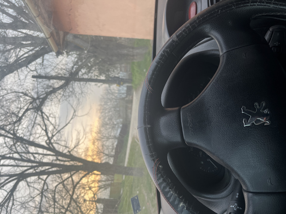 The image provides a first-person perspective from inside a Peugeot vehicle, stationary or moving slowly, in General Todorov, Bulgaria