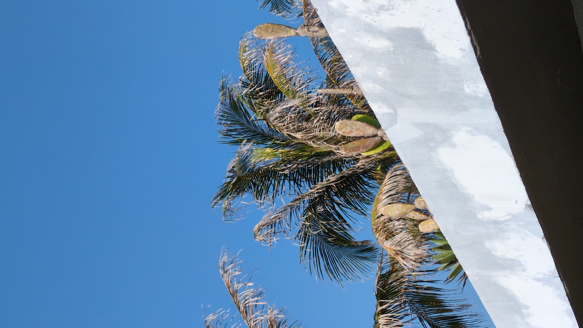 - "The image depicts a view upwards from beneath a structure, possibly a building overhang, towards a palm tree and a clear blue sky" by FM-MreoF3, licensed under CC BY 4.0